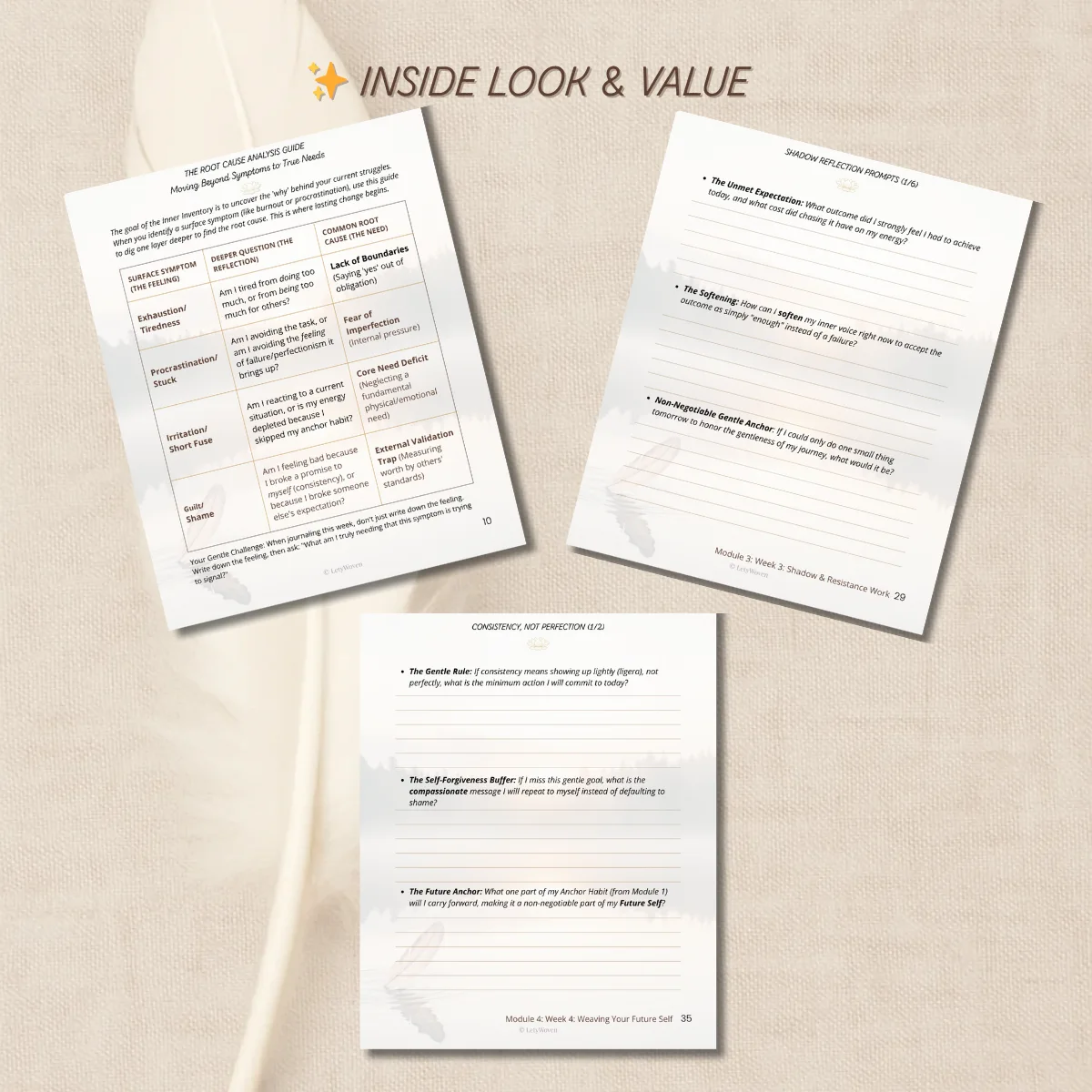 Action: Stop treating symptoms like guilt or procrastination. First, use the exclusive Root Cause Analysis Guide (page 10). You pinpoint the true unmet needs that drive your stress. This is where lasting change begins. We provide prompts that directly link surface-level feelings (like tiredness) to core needs (like boundaries or breaking free from external validation traps).